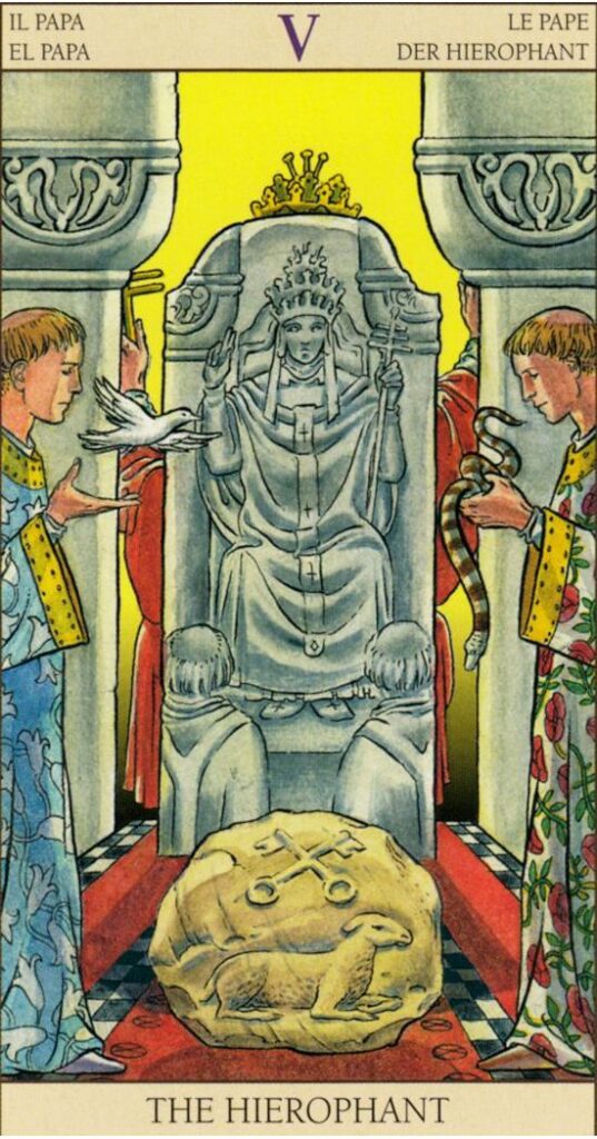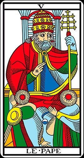El Papa o Hierofante, Arcano 5 del Tarot de Marsella y Raider Waite respectivamente