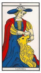 El Arcano VIII La Fuerza simboliza la calma interior, la autoconfianza y el poder de la dulzura por sobre la violencia. Habla de dominio sobre los instintos y la canalización de la energía vital. En lectura, anuncia coraje, superación de obstáculos y crecimiento personal.