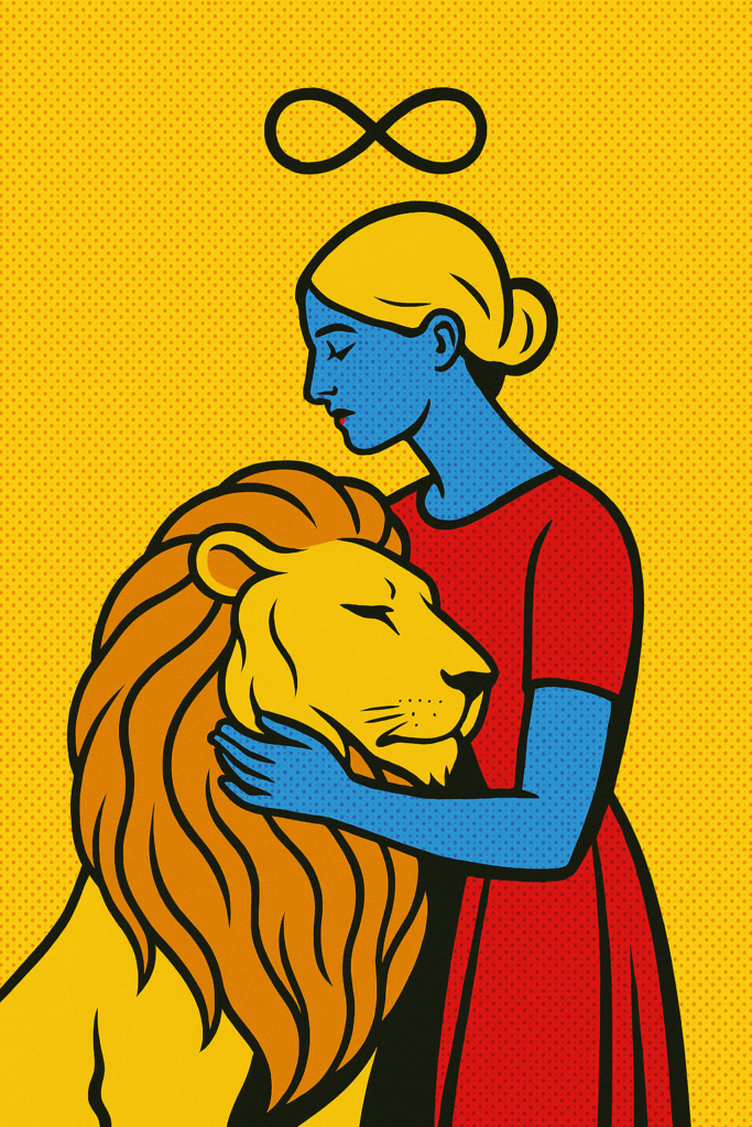 La Fuerza representa el poder interior que se impone sin violencia. La imagen tradicional muestra a una mujer domando a un león con suavidad, no con cadenas ni espadas. Es la carta del dominio sobre los instintos y de la capacidad de mantener la calma incluso en medio de la tormenta.